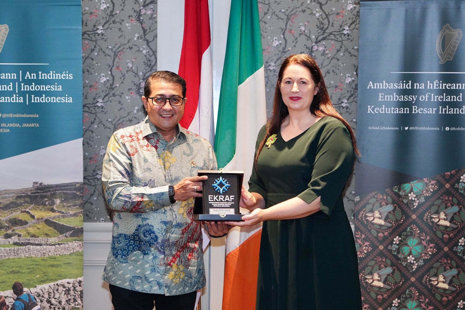 Dalam kesempatan tersebut, Duta Besar Irlandia untuk Indonesia, Sharon Lennon, menyampaikan apresiasi atas kehadiran Pemerintah Indonesia yang diwakili Menteri Ekraf beserta jajaran. Pertemuan ini membuktikan pentingnya hubungan kreativitas dan budaya sebagai jembatan kerja sama kedua negara.
