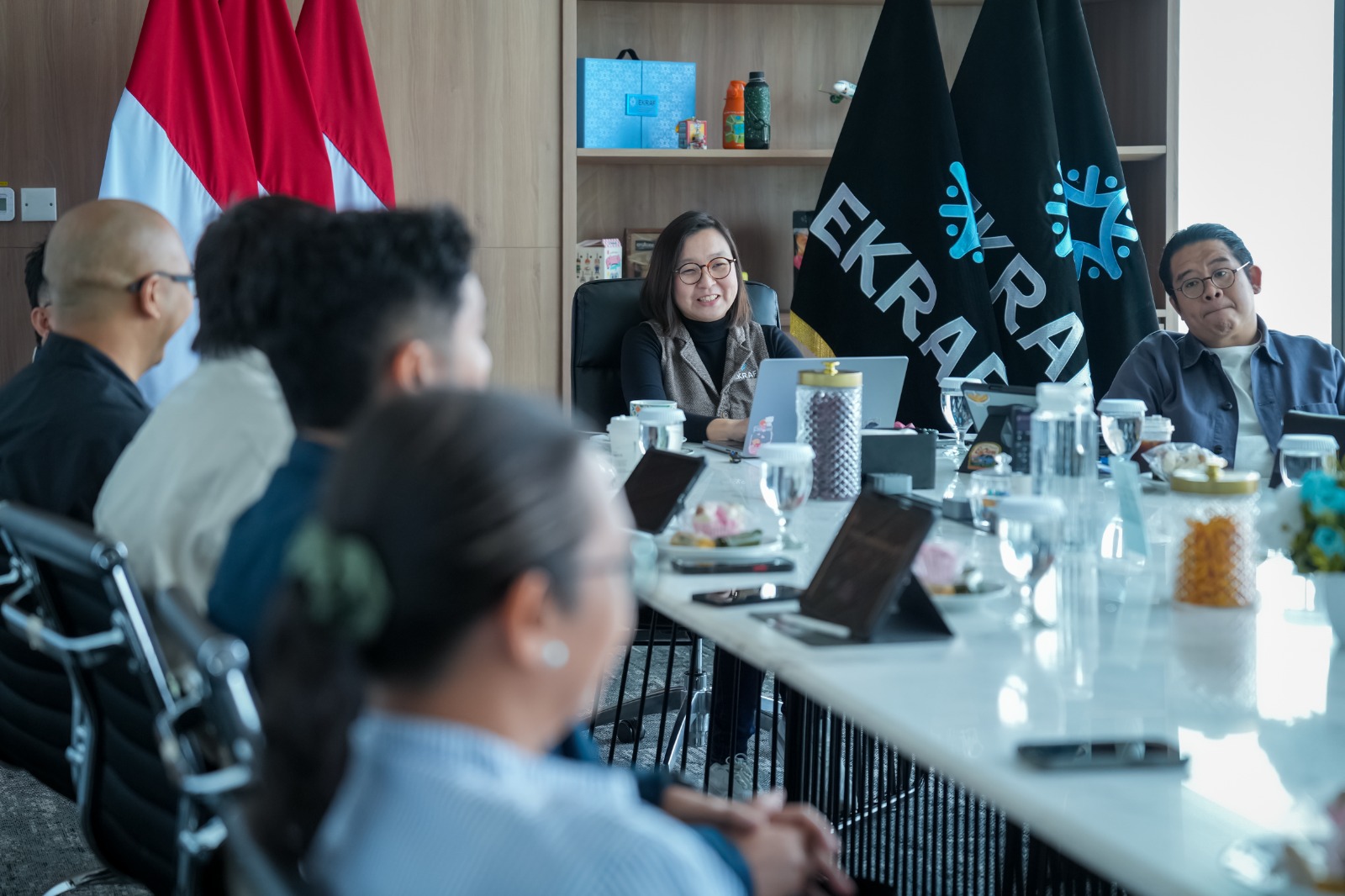 Pertemuan ini ditutup dengan kesepakatan untuk melanjutkan koordinasi teknis guna mematangkan konsep kolaborasi. Turut hadir mendampingi Wamen Ekraf, Staf Khusus Menteri Bidang Penguatan Ekosistem Ekonomi Kreatif dan Data, Jago Anggara.